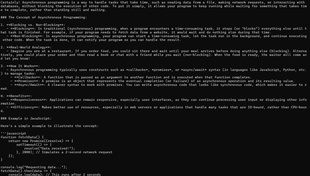 You are a highly experienced software engineer. Explain the concept of asynchronous programming to a beginner.